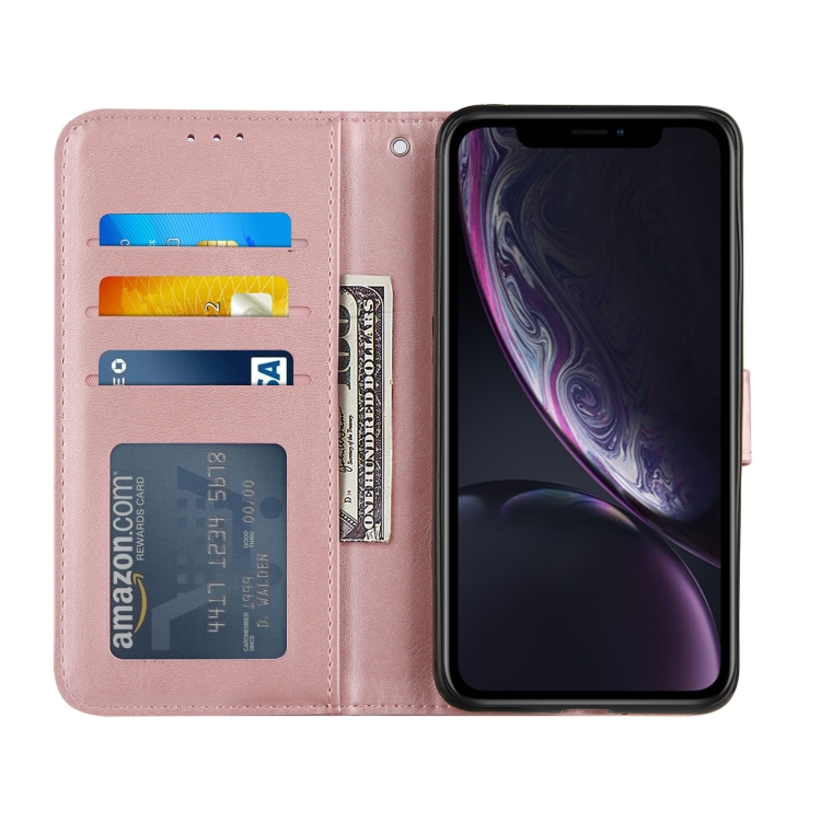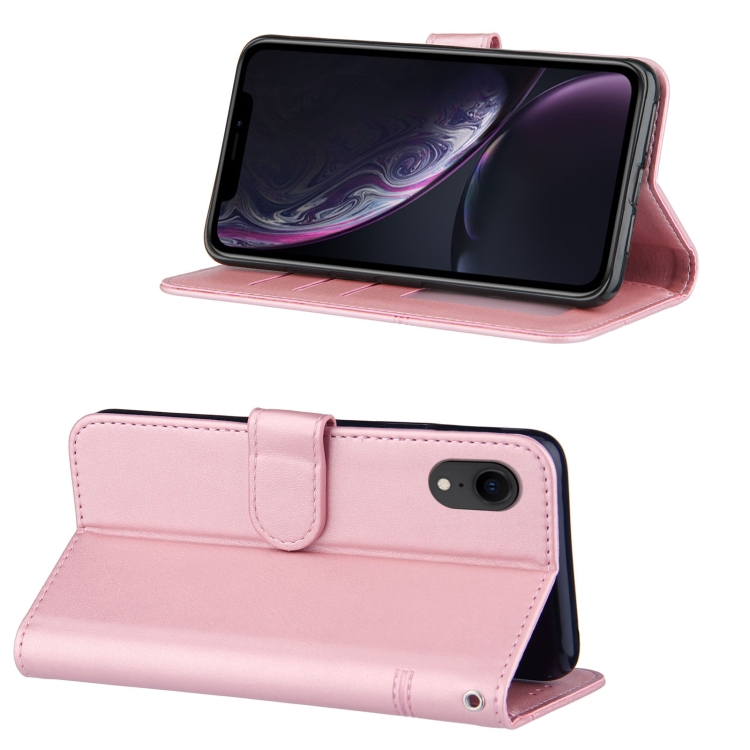 Funda de Cuero para iPhone Xr Costura Textura de Becerro con Hebilla, Tapa Horizontal, Soporte, Ranuras para Tarjetas y Cordón (Rosa)
