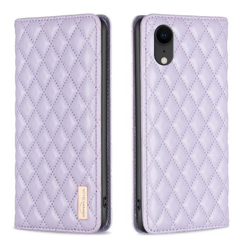 For iPhone XR Diamond Lattice Magnetic Leather Flip Phone Case(Purple)