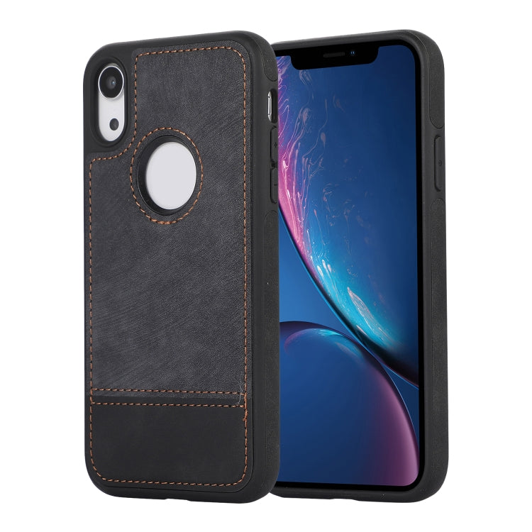 Funda para iPhone Xr Empalme Costura Caja de Teléfono de Pu con Recorte Hueco (Negro)