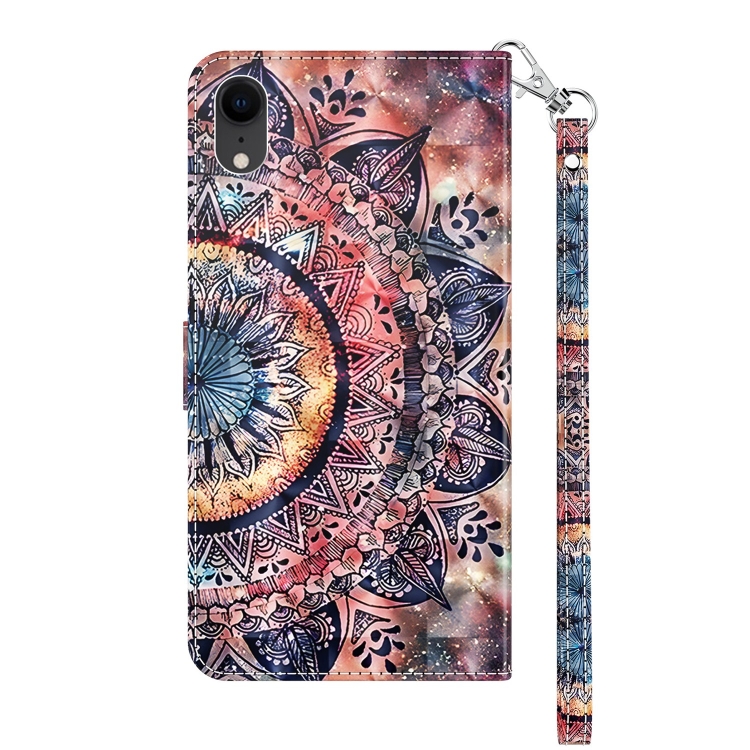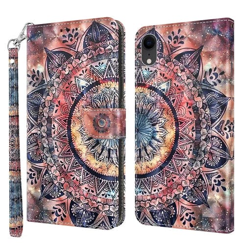 Estuche para teléfono iPhone Xr cuero pintado en 3D Mandala colorida
