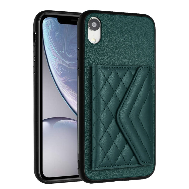 Estuche para Teléfono iPhone Xr con Bolsa para Tarjetas Rfid Textura Rómbica y Cordón Largo (Verde)
