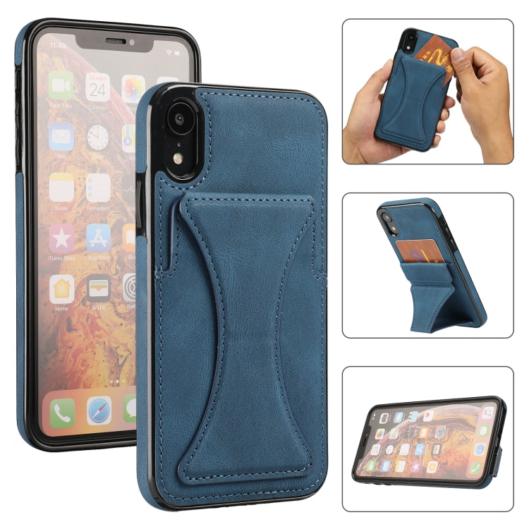 Estuche Protector Ultrafino para iPhone Xr con Soporte y Función Magnética de Metal (Azul)
