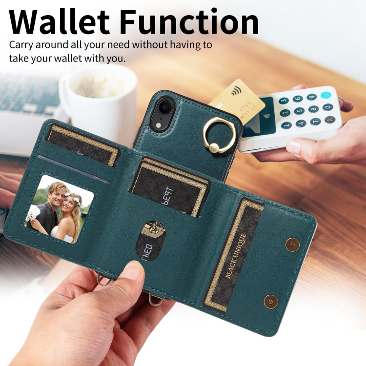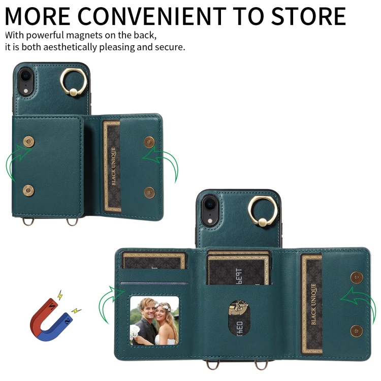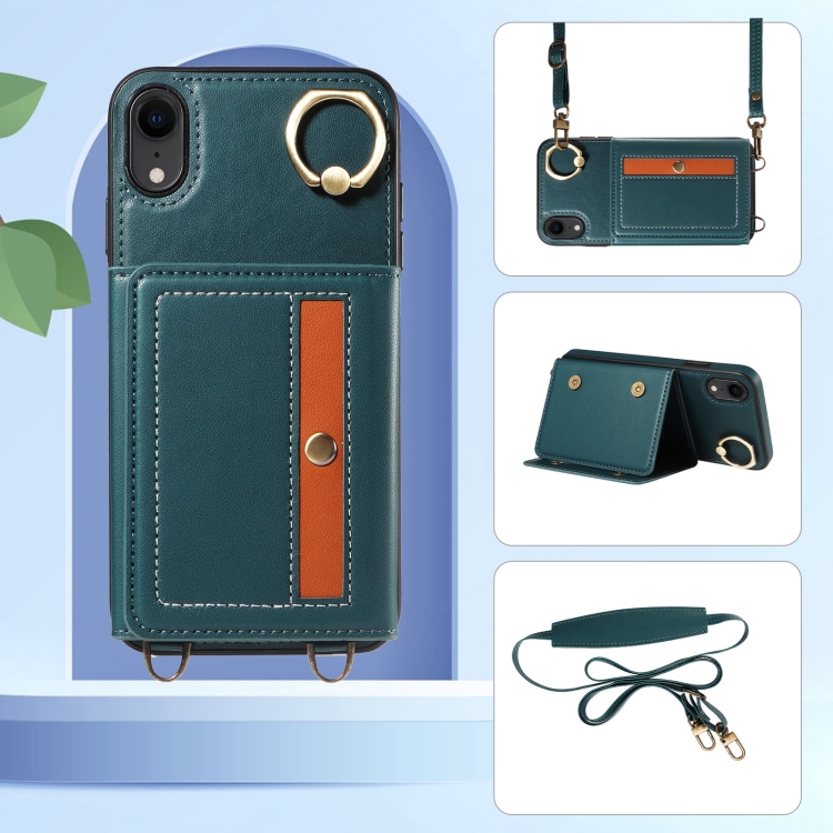Funda para iPhone Xr Cuero con Soporte para Anillo y Tarjeta Cruzada (Verde)