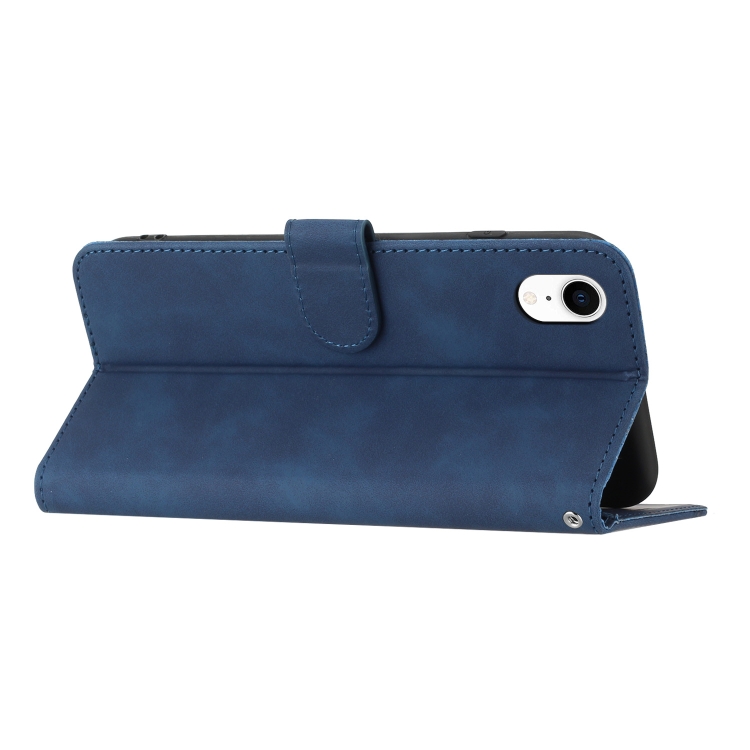 Funda para iPhone Xr Skin Feel Leather con patrón de corazones (Royal Blue)