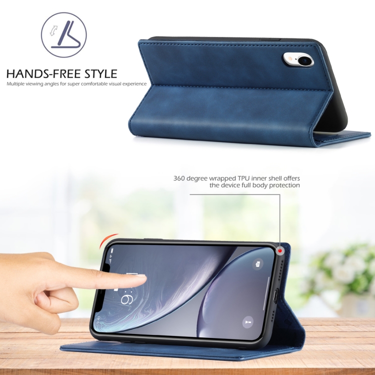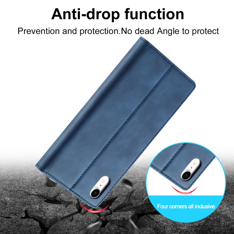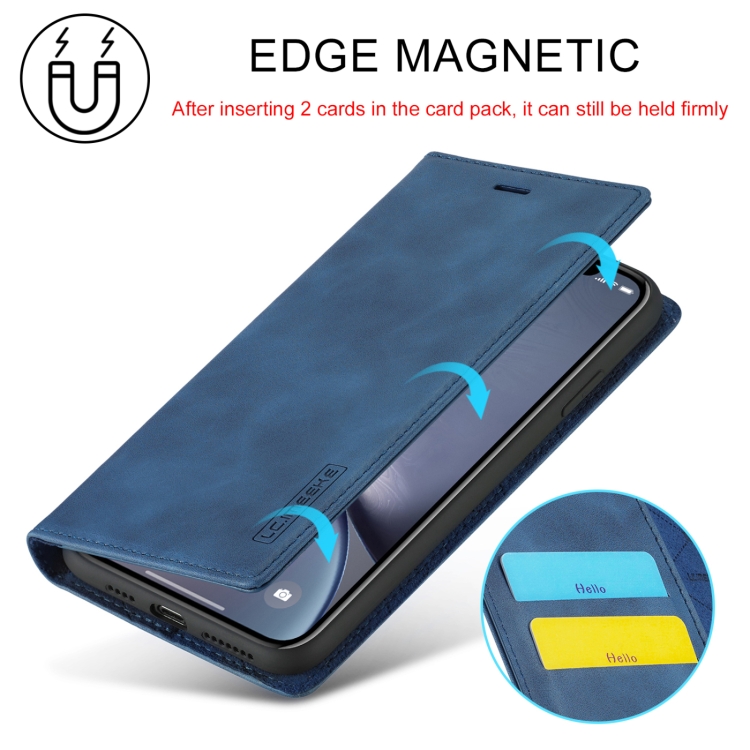 Funda para iPhone Xr Lc.Imeeke Flip Horizontal Ultrafino Magnetismo Fuerte TPU + PU con Soporte y Ranuras (Azul)