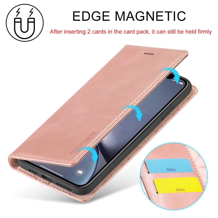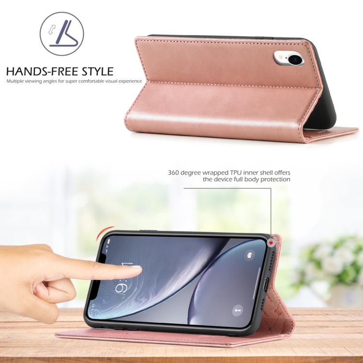 Funda para iPhone Xr Lc.Imeeke Flip Horizontal Ultrafina a Prueba de Golpes con Soporte y Ranuras (Oro Rosa)