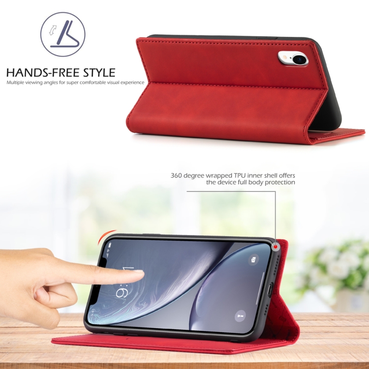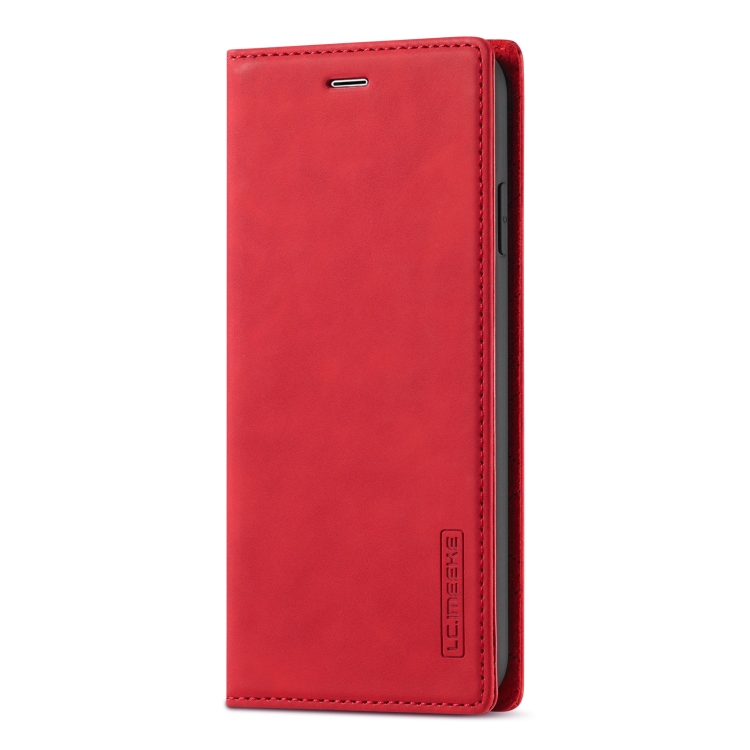 Funda para iPhone Xr Lc.Imeeke Flip Horizontal Ultrafino Magnetismo Fuerte TPU + PU con Soporte y Ranuras (Rojo)