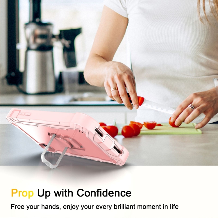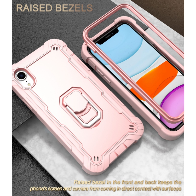 Funda para iPhone Xr PC + Goma 3 Capas a Prueba de Golpes con Soporte Giratorio (Oro Rosa)