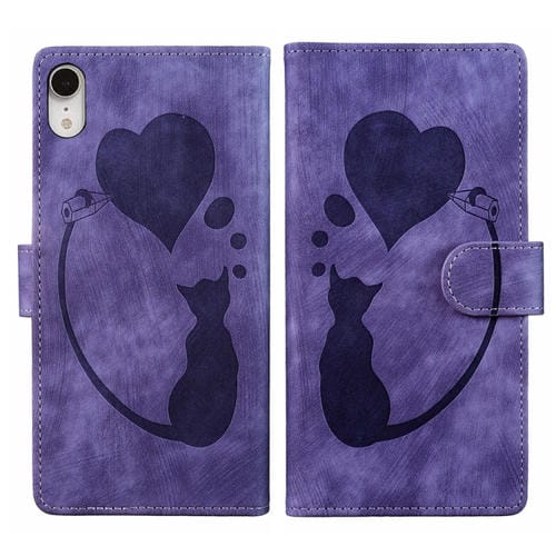 Funda para Teléfono iPhone Xr Pen Heart Cat Cuero En Relieve (Púrpura)