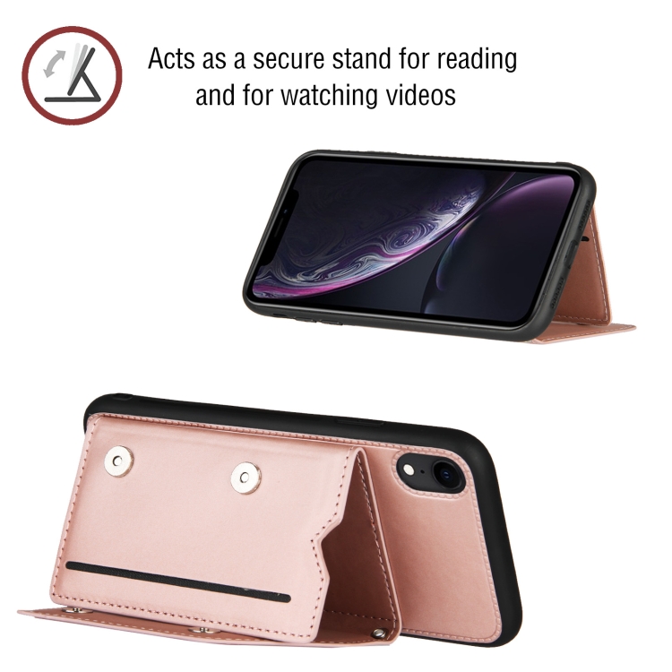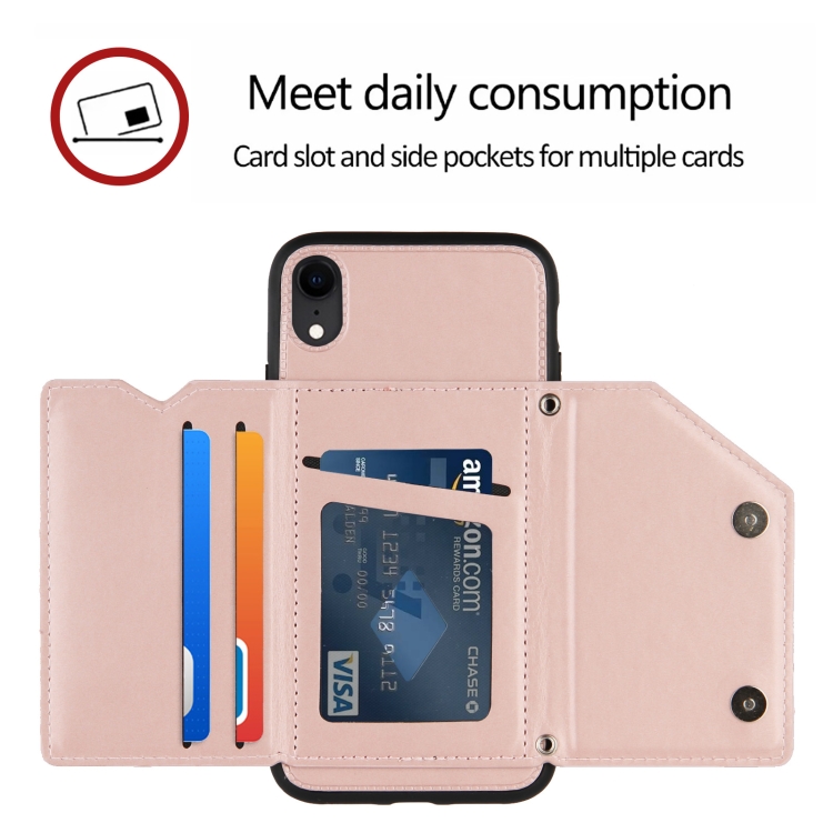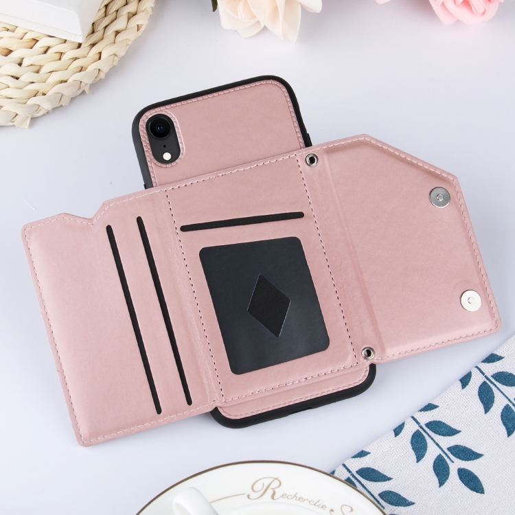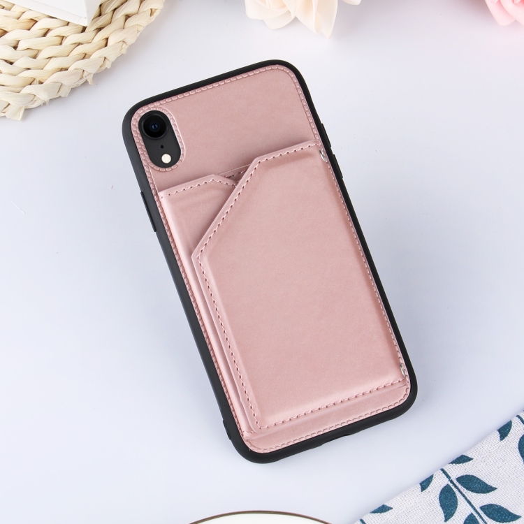 Funda para iPhone Xr Skin Feel PU + TPU + PC Contraportada Estuche a Prueba de Golpes con Ranuras y Soporte (Oro Rosa)