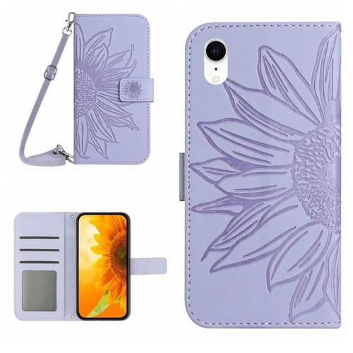 For iPhone XR Skin Feel Sun Flower Pattern Flip Leather Phone Case Cover with Lanyard(Purple)
