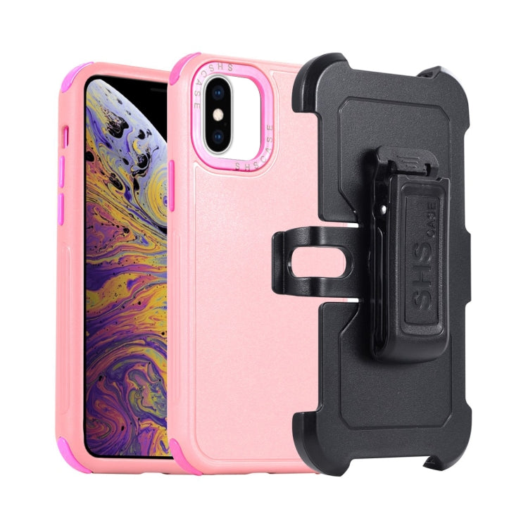 Funda para Teléfono iPhone Xs Max 3 en 1 PC y TPU con Funda Deslizante (Rosa + Rojo Rosa)