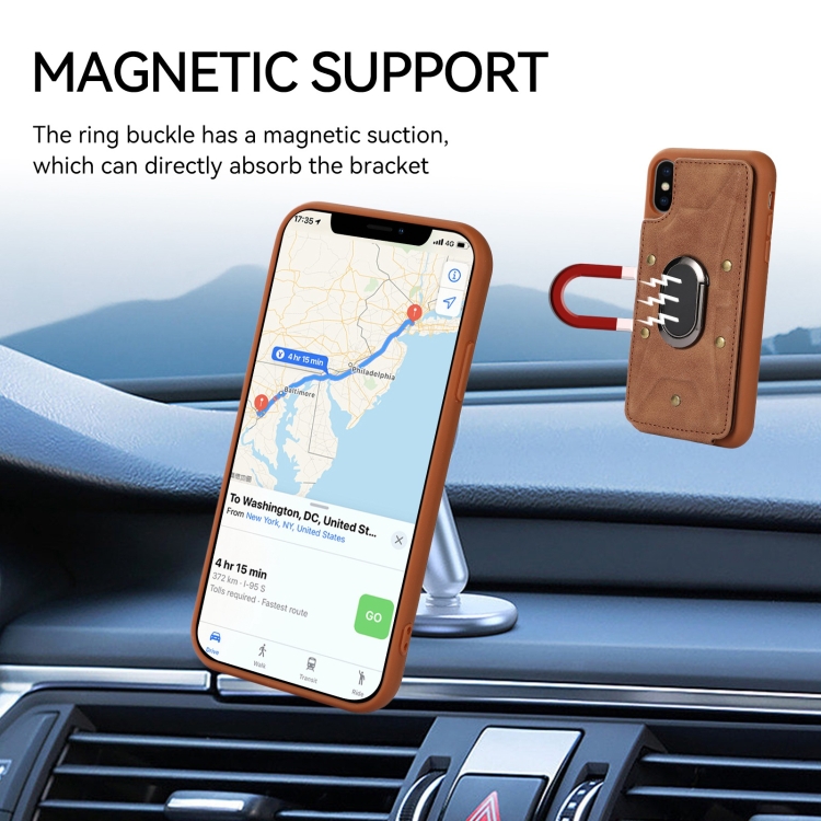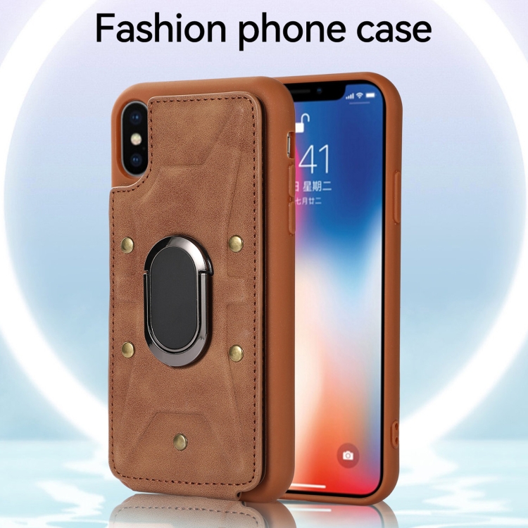 Funda para iPhone Xs Max Armor Ring Wallet Back Cover Phone Case (Marrón)