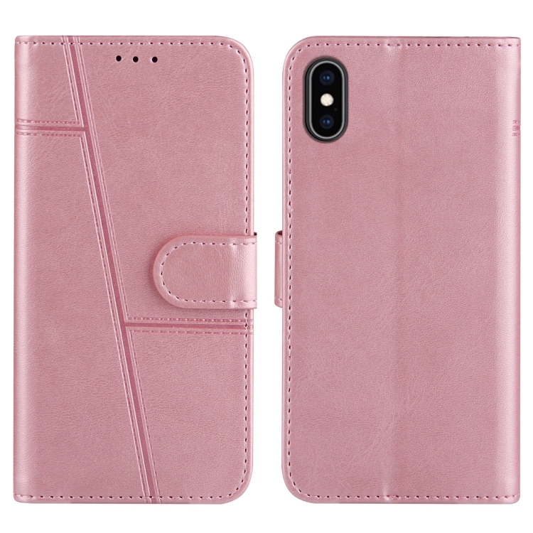 Funda para iPhone Xs Max Costura Calf Texture Hebilla con Tapa Horizontal Soporte Ranuras Tarjetas Billetera y Cordón (Rosa)