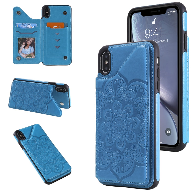 Estuche Protector para iPhone Xs Max Flower Embossing Pattern a Prueba de Golpes con Soporte y Ranuras para Tarjetas (Azul)