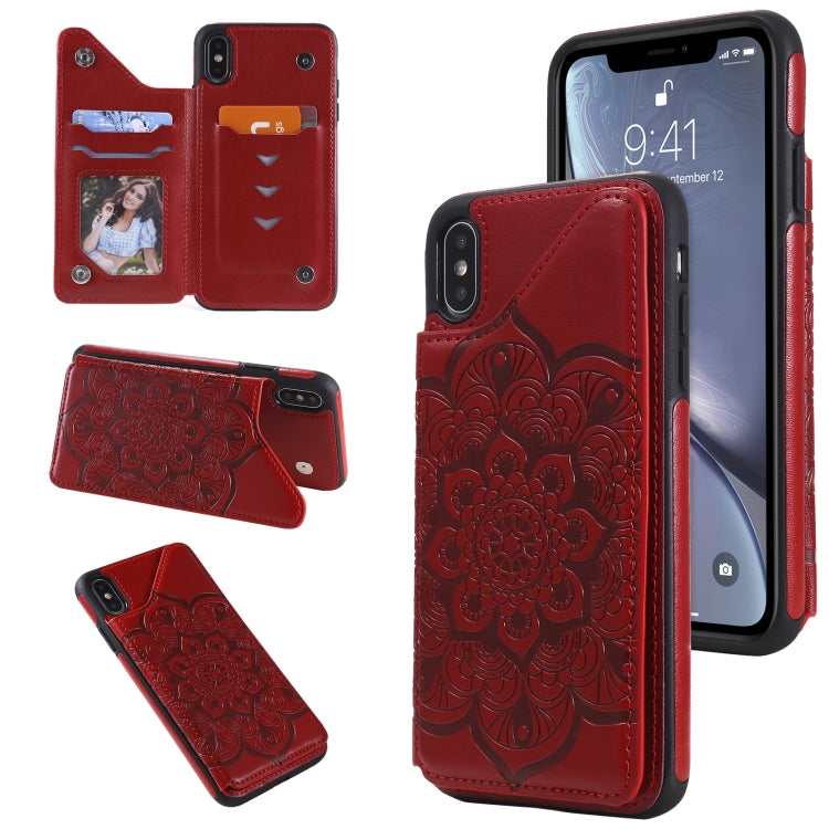 Estuche protector para iPhone Xs Max Flower Embossing Pattern a prueba de golpes con soporte y ranuras para tarjetas (Rojo)