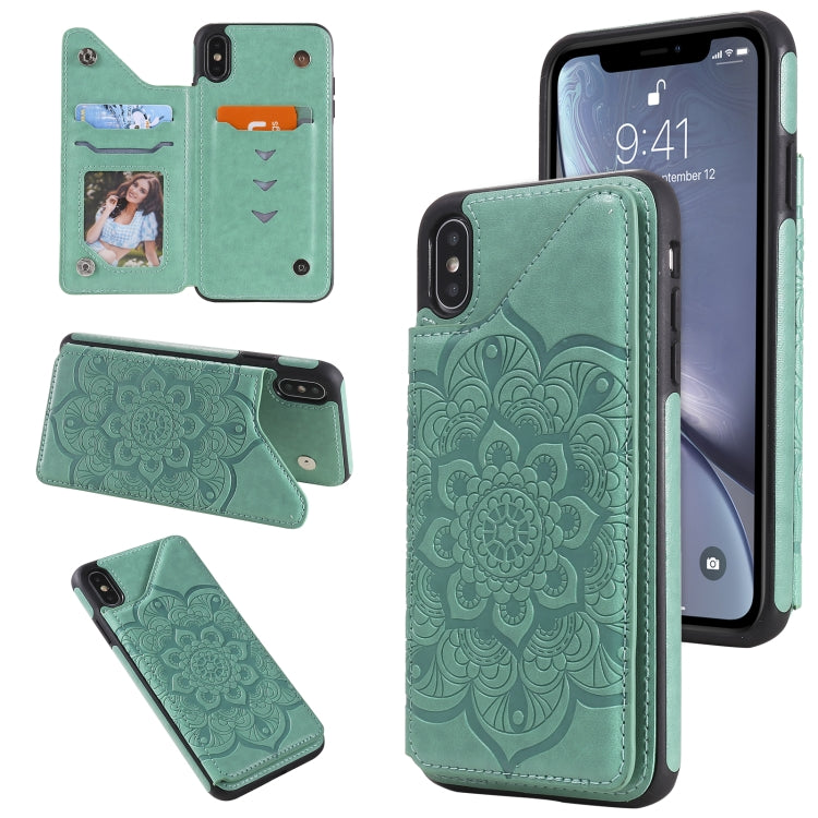 Estuche Protector para iPhone Xs Max Flower Embossing Pattern a Prueba de Golpes con Soporte y Ranuras para Tarjetas y Marco de Fotos (Verde)