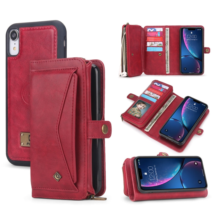 Funda para Teléfono iPhone Xs Max Cuero con Billetera y Cremallera Multifuncional (Rojo)