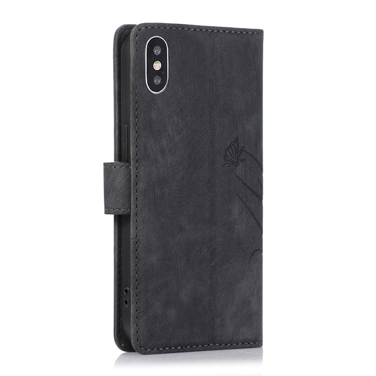 Funda para Teléfono iPhone Xs Max Cuero Relieve Mariposa Orquídea (Negro)