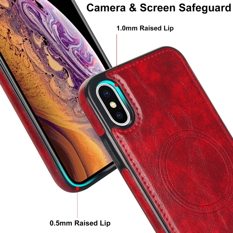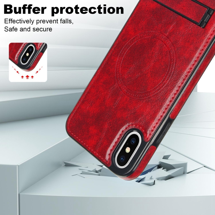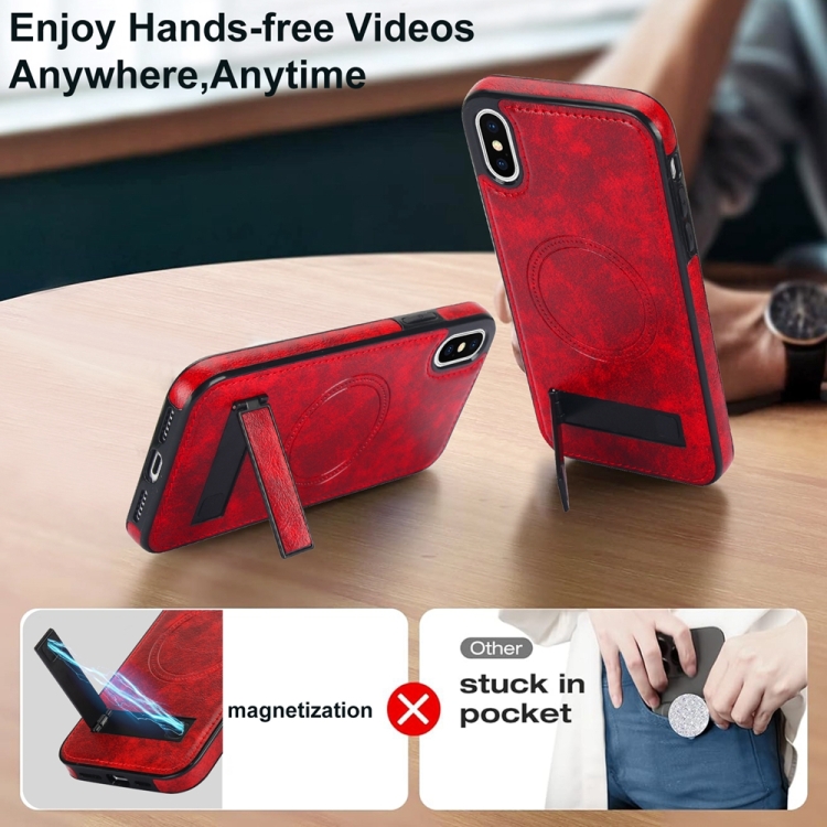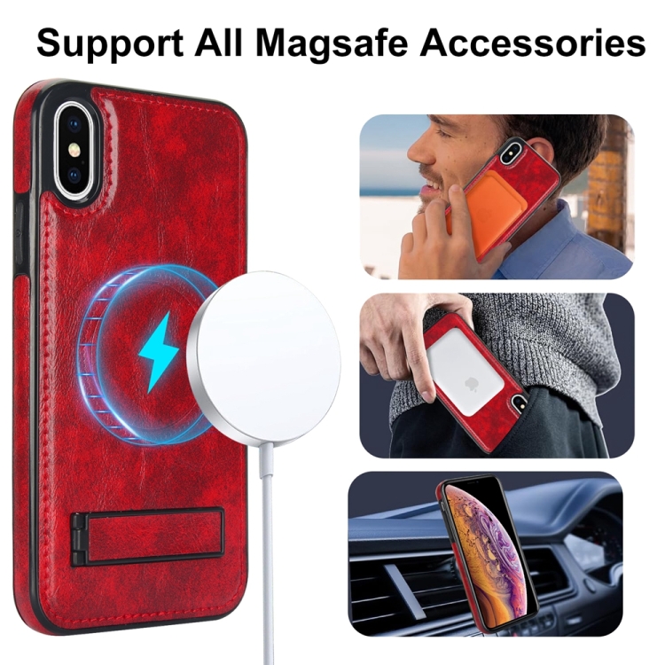 Funda para Teléfono iPhone Xs Max Magsafe Soporte Invisible Cuero Retro (Rojo)