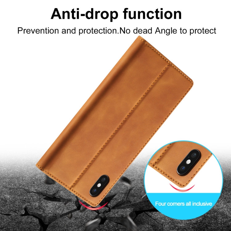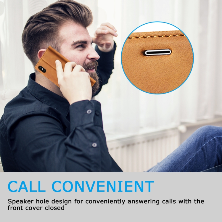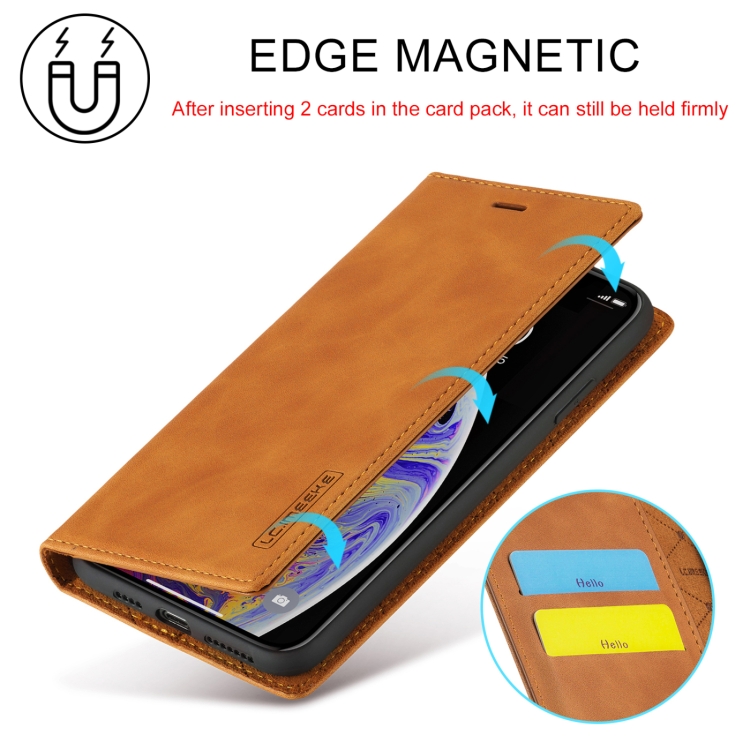 Funda para iPhone Xs Max Lc.Imeeke Flip Horizontal Ultradelgada a Prueba de Golpes con Soporte y Ranuras para Tarjetas (Marrón)