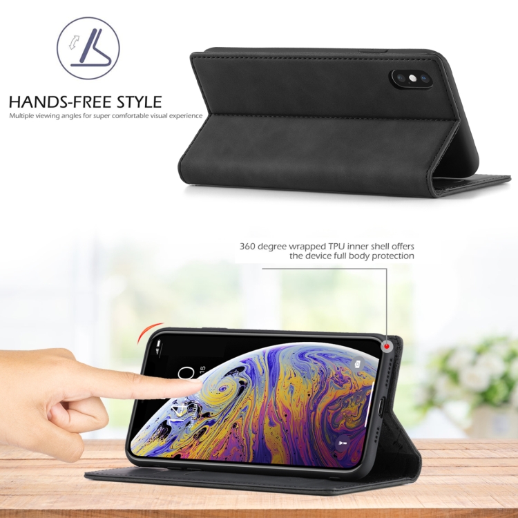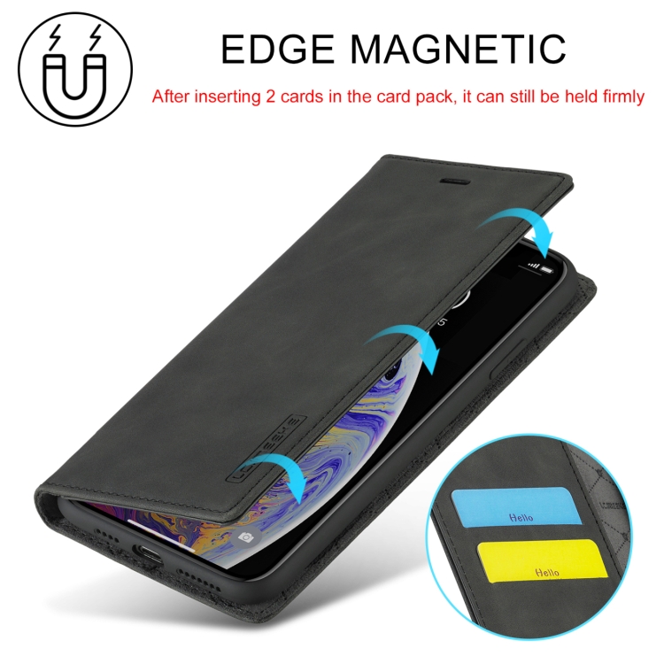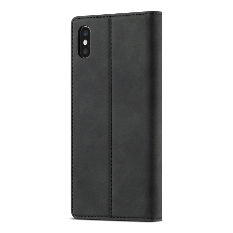 Funda para iPhone Xs Max Lc.Imeeke Flip Horizontal Fuerte Magnetismo TPU + PU Cuero Soporte Ranuras Tarjetas Billetera (Negro)