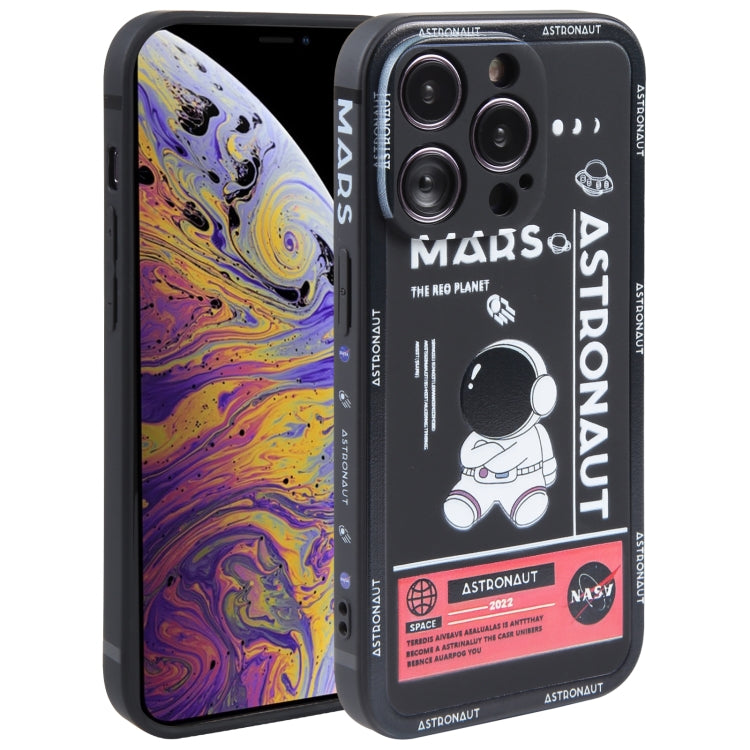 Funda de teléfono iPhone Xs Max patrón Astronauta de Marte borde recto silicona (Negro)