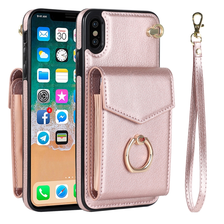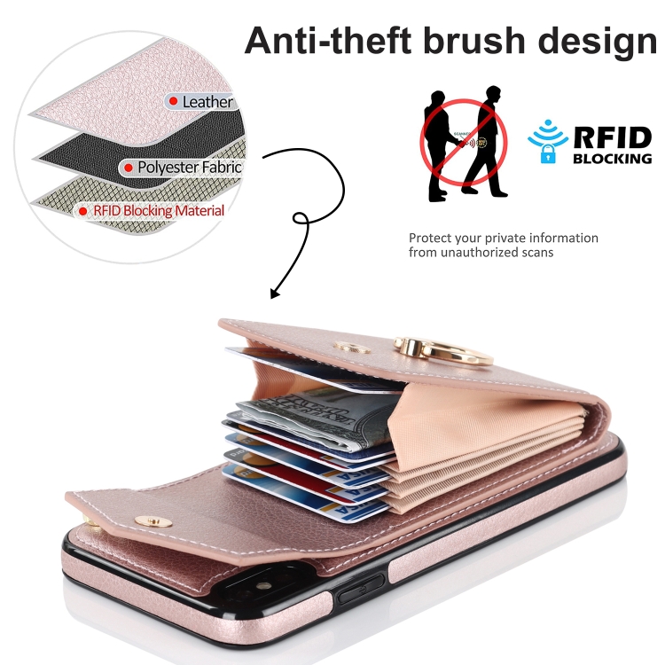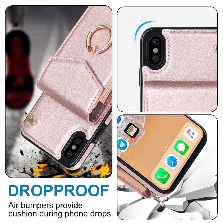 Funda para iPhone Xs Max Ring Holder con Ranura para Tarjeta RFID (Oro Rosa)