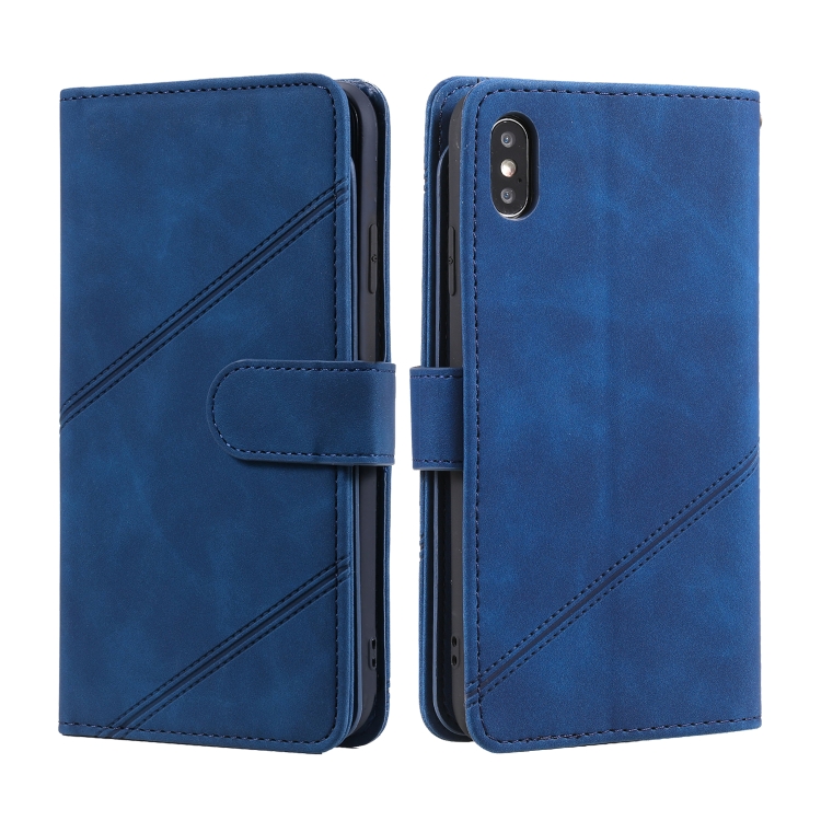 Estuche para iPhone Xs Max Skin Feel Business de Cuero PU con Tapa Horizontal Soporte Ranuras Tarjetas Billetera Cordón Marco de Fotos (Azul)