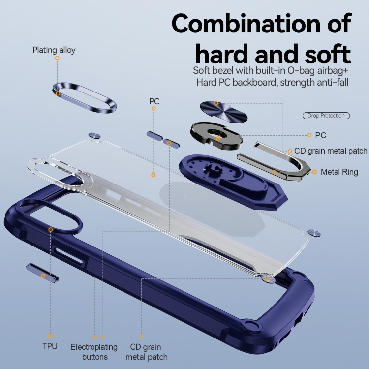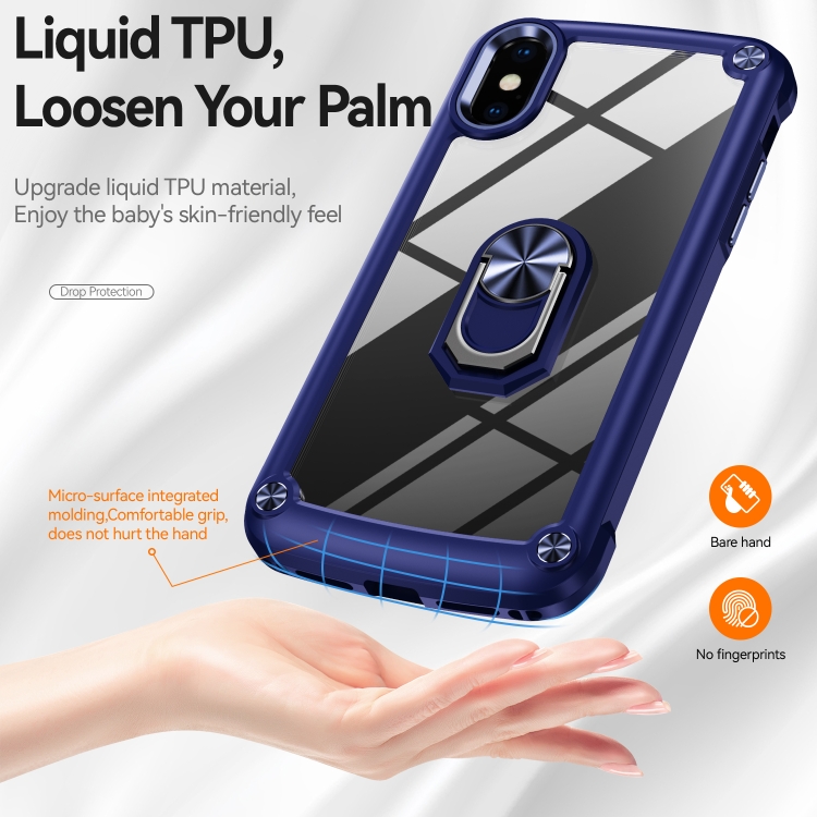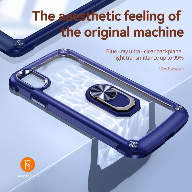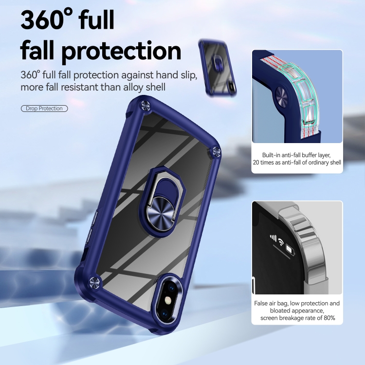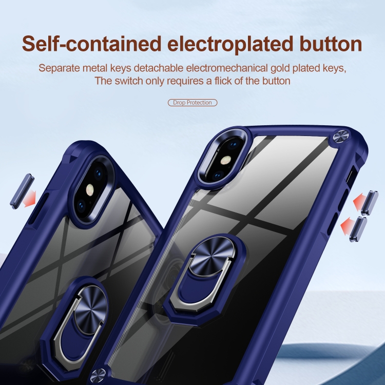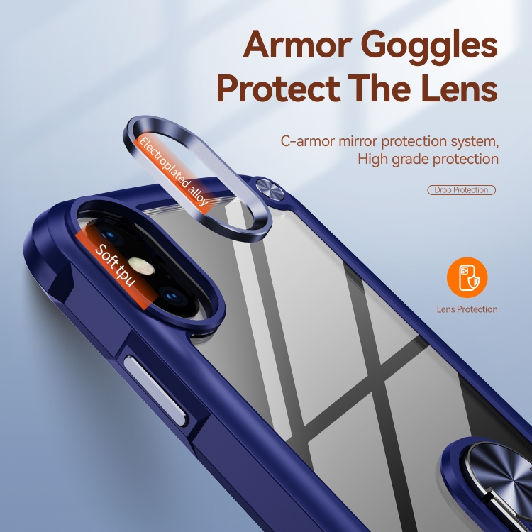 Estuche para Teléfono iPhone Xs Max TPU + PC Protección de Lente Soporte para Anillo (Azul)