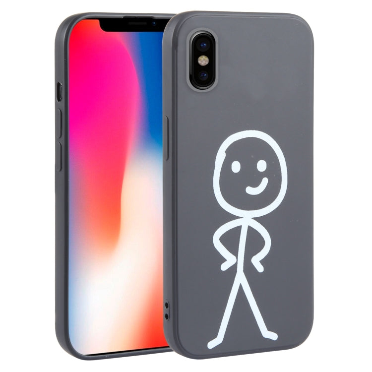 Estuche para Teléfono iPhone Xs X Silicona Líquida Patrón Stickman (Negro)