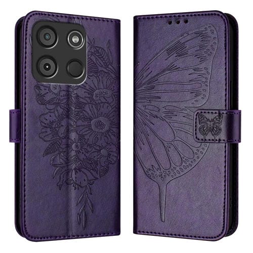 Funda para Teléfono Itel A60 / A60S Cuero con Mariposa en Relieve (Púrpura Oscuro)