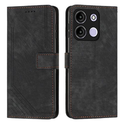 Funda de Cuero para Itel A60S Skin Feel con Patrón de Rayas y Cordón (Negro)