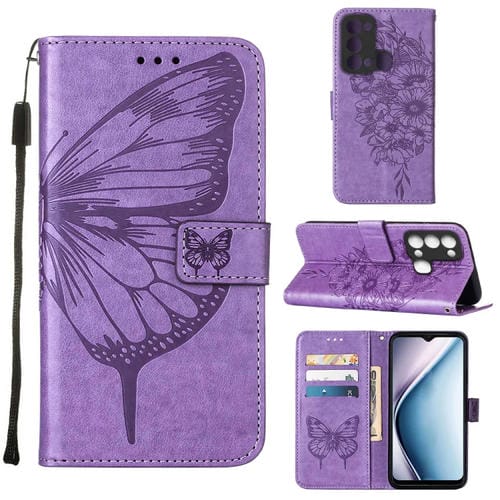 Estuche para Itel P38 S17 S1661W Vision 3 de Cuero con Tapa de Mariposa en Relieve (Púrpura)