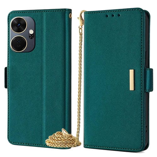 Funda de Cuero para Itel P55 + 4G con Cadena Cruzada (Verde)