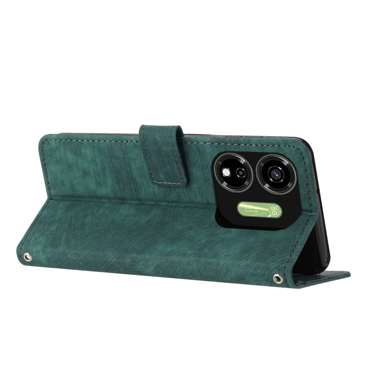 Funda de Cuero para Itel P55 5G Skin Feel con Patrón de Rayas y Cordón (Verde)