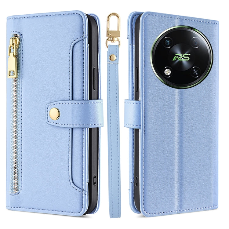 Estuche de Cuero para Itel Rs4 4G con Billetera, Cremallera y Cuerpo Cruzado (Azul)