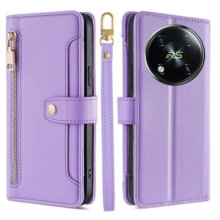 Estuche de Cuero para Itel Rs4 4G con Billetera, Cremallera y Textura de Oveja (Púrpura)