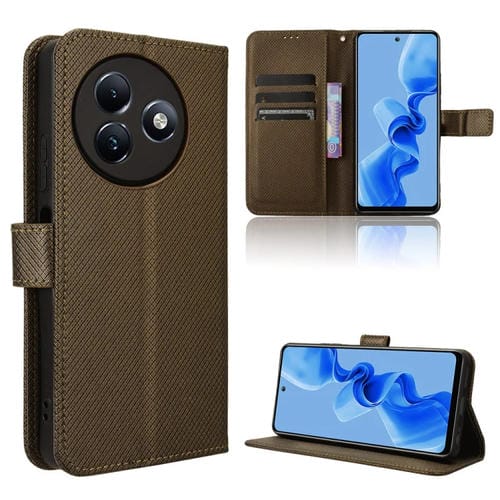 Funda de Cuero para Itel S24 4G con Textura de Diamante (Marrón)