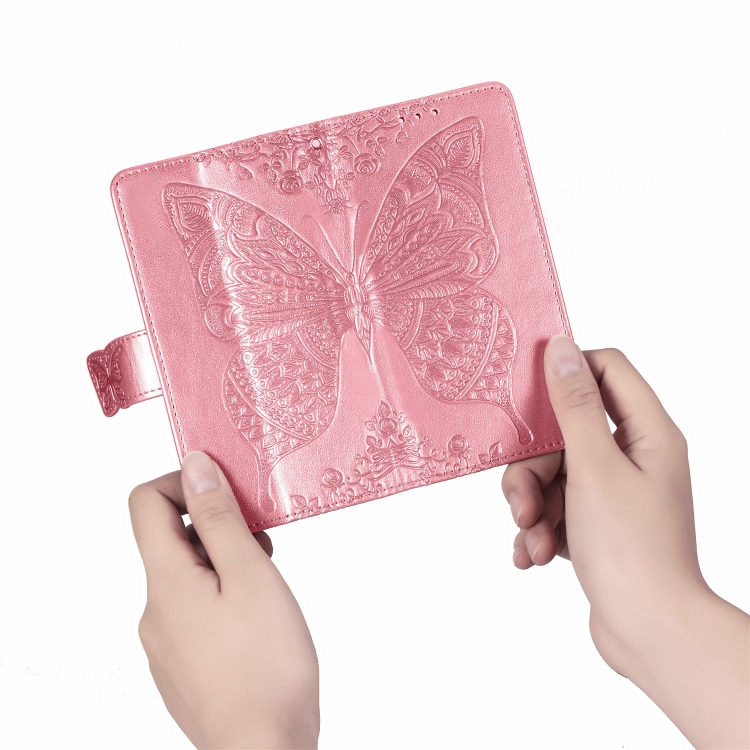 Funda de Cuero LG K30 (2019) Butterfly Love Flower con Tapa Horizontal, Soporte y Ranura para Tarjeta (Rosa)