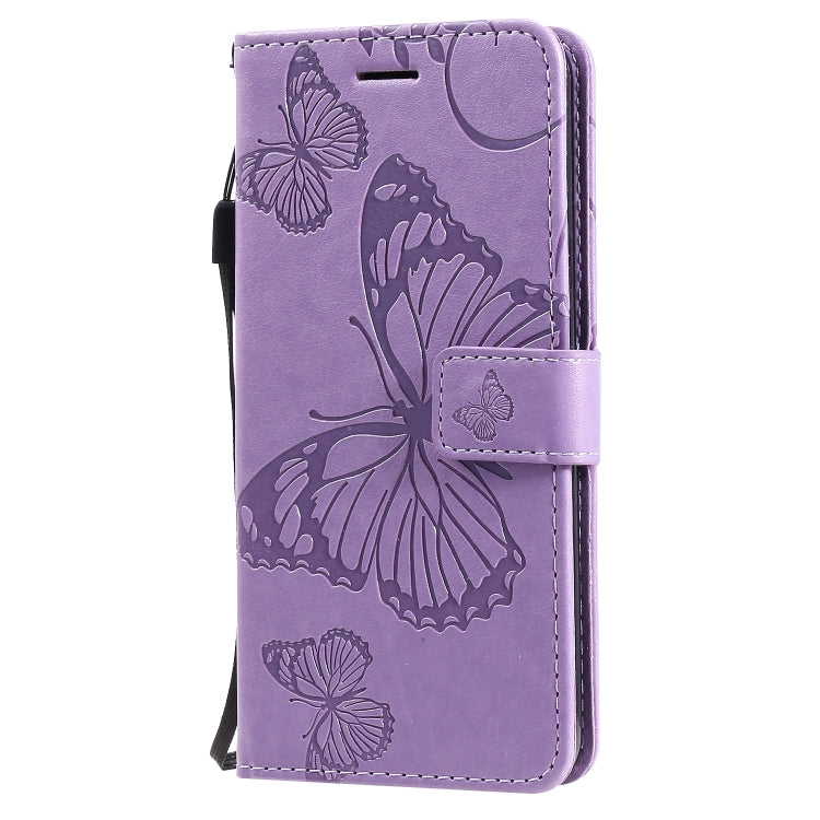 Estuche de Cuero PU para LG K30 con Tapa Horizontal, Estampado Mariposa, Soporte, Ranuras para Tarjetas y Cordón (Morado)