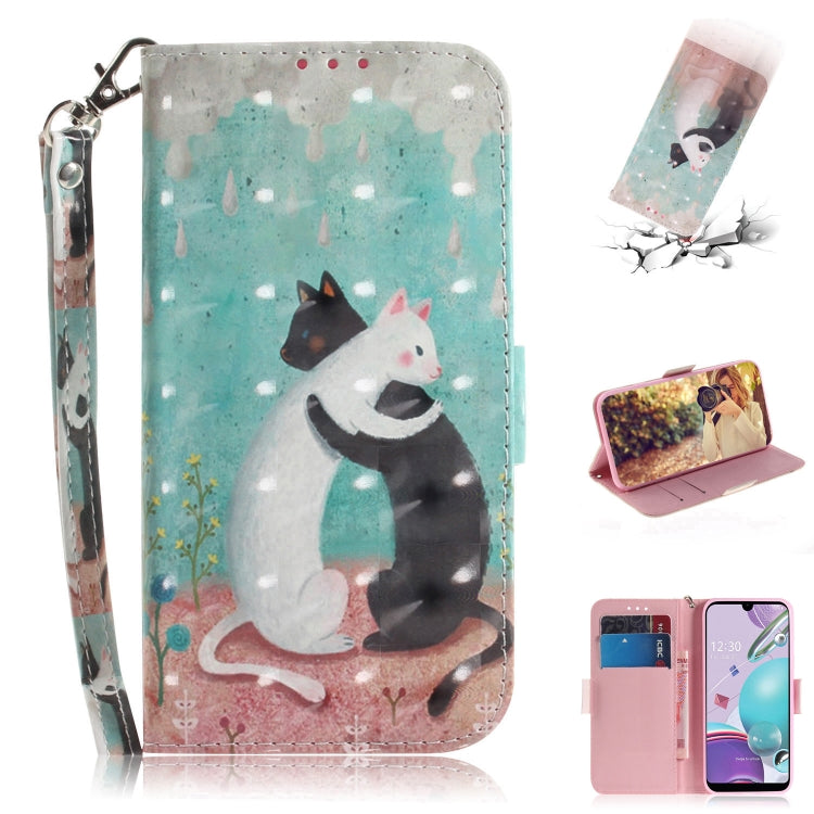 Funda de Cuero Abatible Horizontal para LG K31 con Dibujo 3D, Soporte, Ranuras y Cordón (Gato Blanco y Negro)
