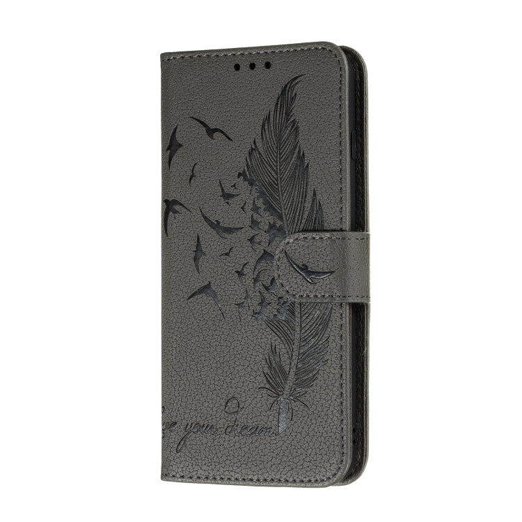 Funda de Cuero para LG K41S / K51S con Patrón de Plumas, Tapa Horizontal, Billetera y Soporte