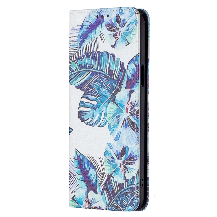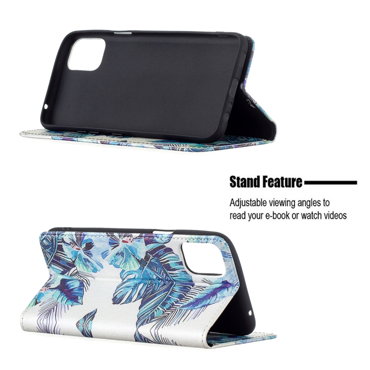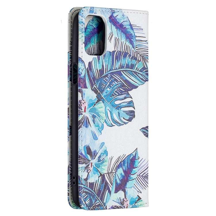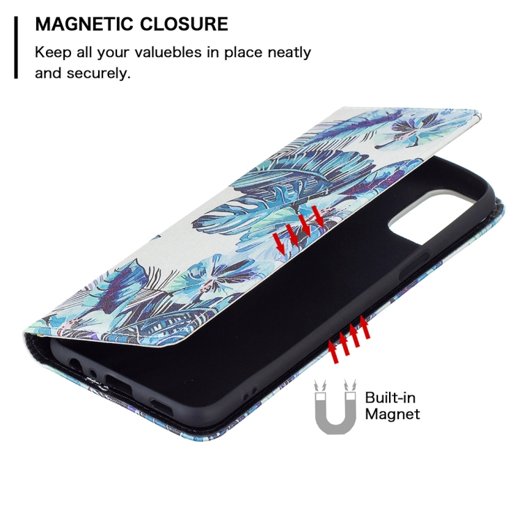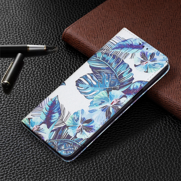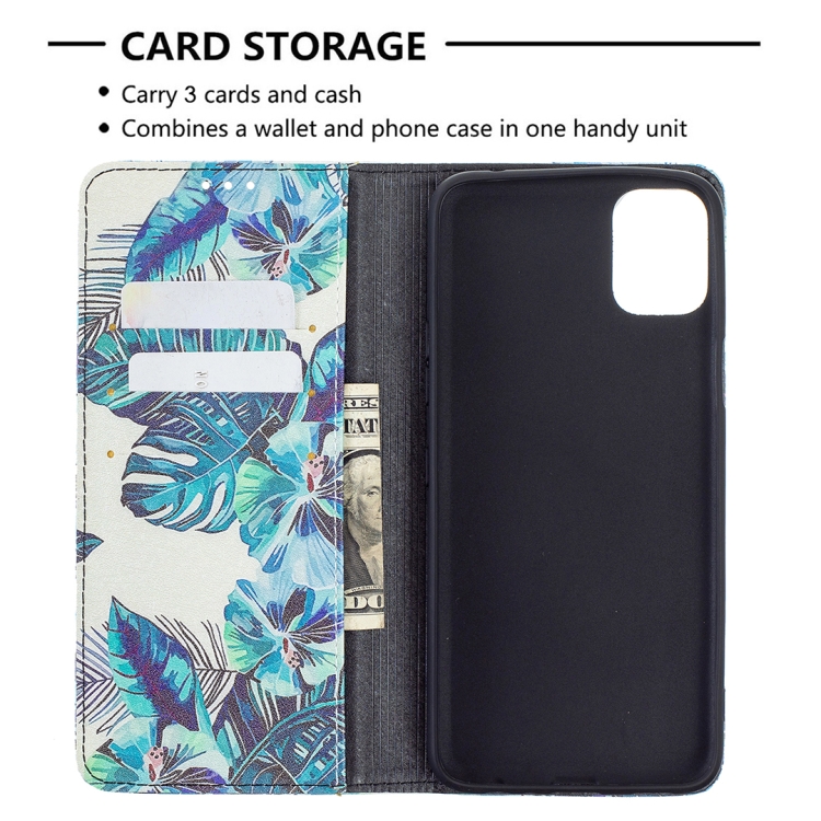 Funda de Cuero PU para LG K42 con Patrón Invisible, Soporte y Ranuras para Tarjetas (Hojas Azules)