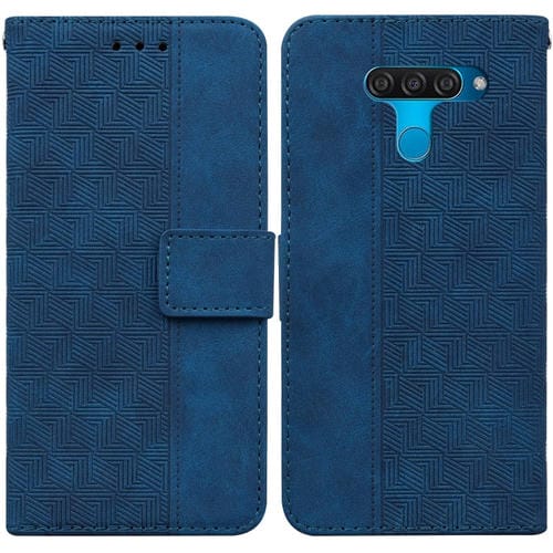 Caja de Cuero En Relieve Geométrico para LG K50 / Q60 (Azul)