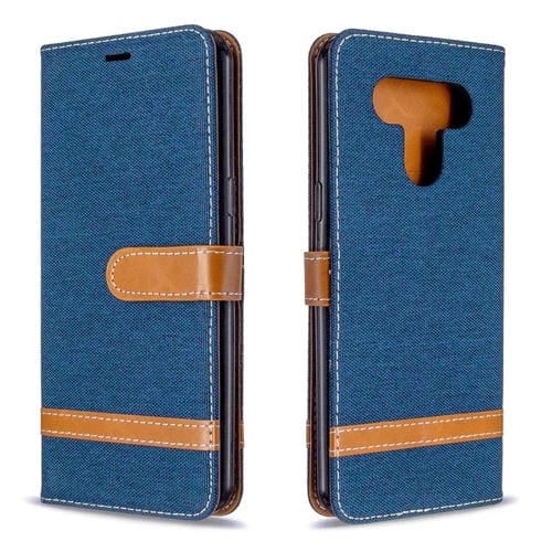 Funda de Cuero para LG K51 con Tapa Horizontal, Textura Mezclilla, Soporte, Ranuras Tarjetas y Billetera (Azul Marino)