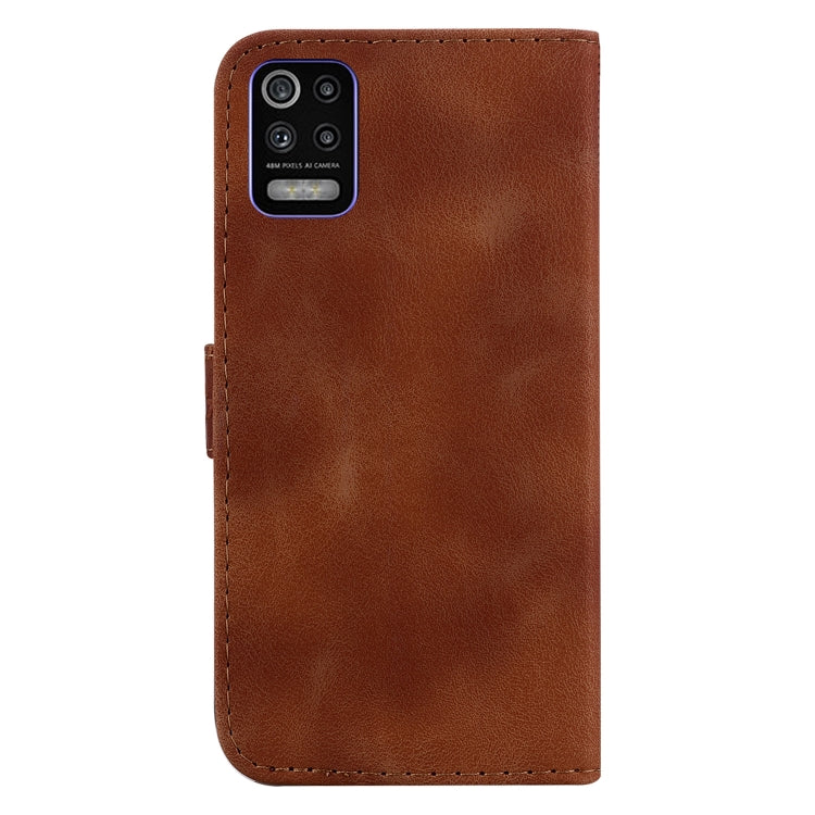 Funda de Cuero En Relieve en Forma de 7 para LG K52 / K62 / Q52 (Marrón)