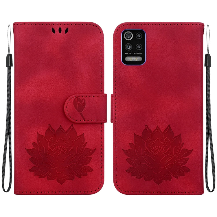 Funda para Teléfono LG K52 K62 Q52 Cuero con Relieve de Loto (Rojo)