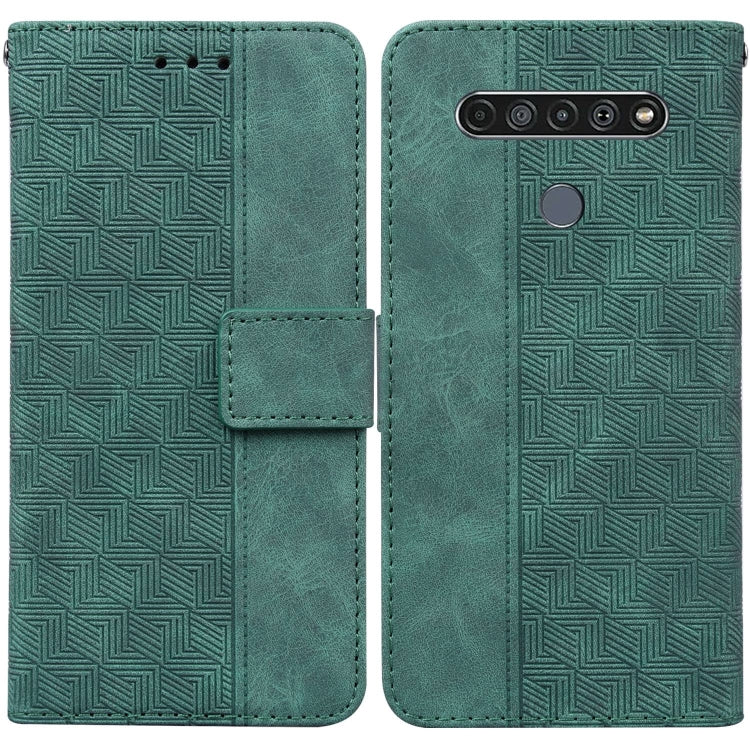 Funda para LG K61 Caja de Cuero en Relieve Geométrico (Verde)