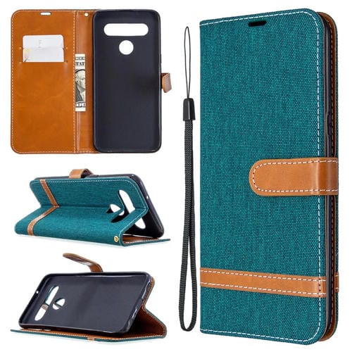 Funda de Cuero para LG K61 Denim Texture con Tapa Horizontal, Soporte, Ranuras para Tarjetas y Cordón (Verde)